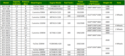 Technical Parameters of Diesel Drive Portable Air Compressor